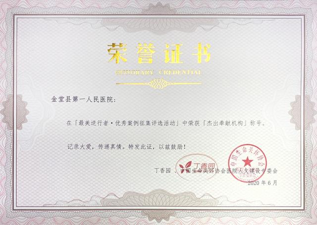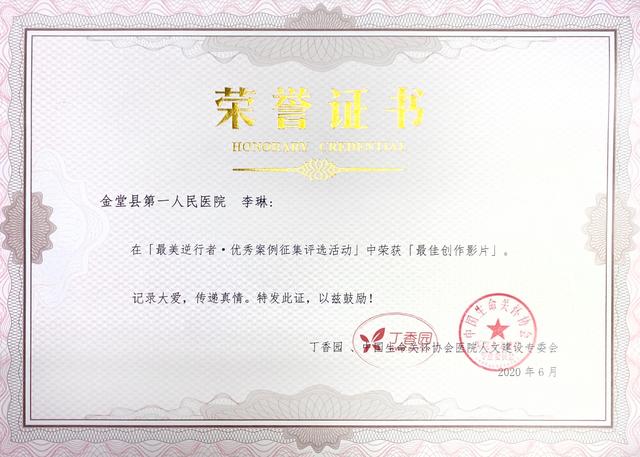 金堂县一医院·华西金堂医院荣获“杰出奉献机构”荣誉称号,原创视频《“土味”防疫Rap秀》获“最佳创作影片”奖。( 古雪薇)