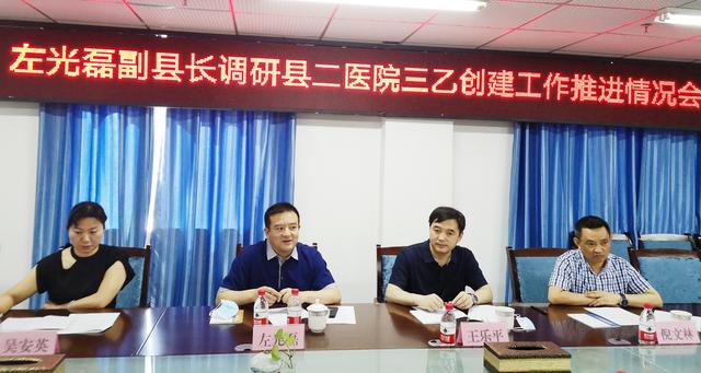 6月24日上午,左光磊副县长莅临金堂县第二人民医院调研三乙创建工作推进情况,县卫健局局长、党组书记王乐平,系统党委书记吴安英,副局长倪文林陪同调研。