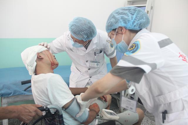 为了推进本次演练顺利进行,7月6日下午在院领导的主持下举行了急救演练协调启动会,提前与相关科室做好沟通。7月8日下午三点,尹仲秋院长宣布演练正式开始。急诊医学科接到120急救电话,淮口公园内发生一起重大交通事故,第一梯队组成的院前急救小组火速赶往事故点,由于受伤人数过多,情况危急,现场医务人员迅速向120急救指挥中心及科室汇报请求支援,科室立即调集第二梯队赶往现场支援,同时启动应急预案,向医务部、护理部以及业务院长汇报。