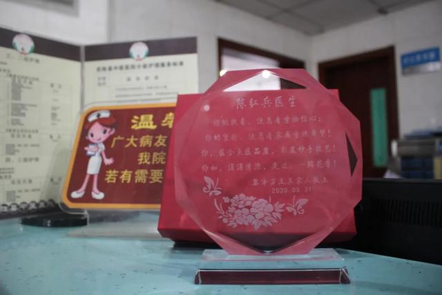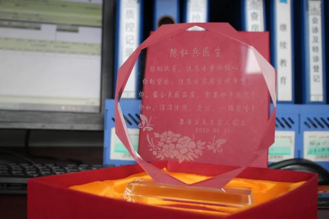陈红兵内四科主治医师,陈医生把细心、耐心、爱心和责任心贯穿到整个医疗诊疗工作中,牢记"以病人为中心"的理念,他的不仅医疗技术高超,而且态度好,收到患者赠送的"明星奖杯"。