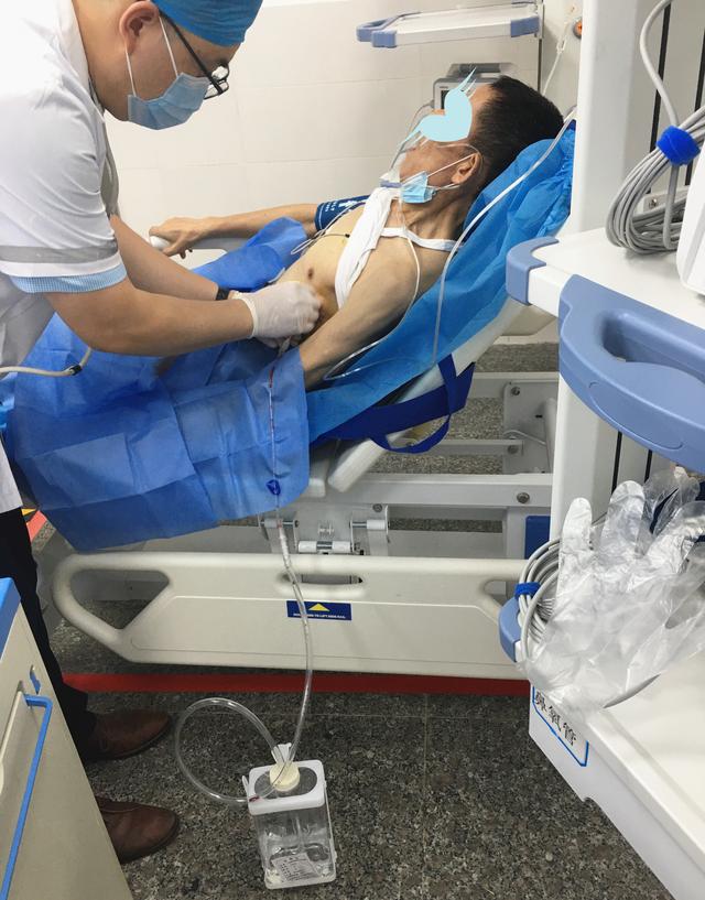 8月11日18:29,金堂县第二人民医院急诊医学科接诊一位急诊患者,临床诊断为左侧张力性气胸、慢性阻塞性肺病急性加重期、急性呼吸衰竭。时间紧迫,情况危急,有着丰富急诊经验的王平主任当机立断,亲自对患者实施左侧胸腔穿刺引流、微创胸腔闭式引流、吸氧等诊疗手术,治疗过程患者生命体征平稳,随后转入其他科室做进一步处理。这也是我院急诊医学科第一次开展微创胸腔闭式引流手术。(李敏)