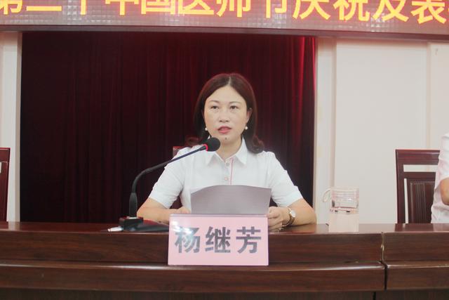 医院院长杨继芳在致辞中向为医疗工作与医院建设倾注心血的全院医师们表示由衷的感谢,并致以节日的祝福。她指出,要以只争朝夕、不负韶华的工作状态,乘风破浪、勇往直前,为坚决打赢新冠肺炎疫情防控总体战争、推动医院高质量发展而努力奋斗!