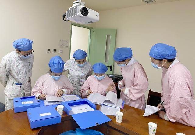 专家组在听取了护理部主任陈碧蓉关于医院基本情况以及护理质控工作开展情况的汇报后,来到重症医学科、神经内科等,通过现场查看护理人员操作,查阅病历、质控资料,并与科室护士和患者进行访谈等形式,对住院患者压力性损伤预防与管理、住院患者导管护理管理、预防 VAP 护理管理、预防导尿管相关尿路感染护理管理、预防中心静脉导管相关血流、感染护理管理以及不良事件管理等方面开展了全面检查。