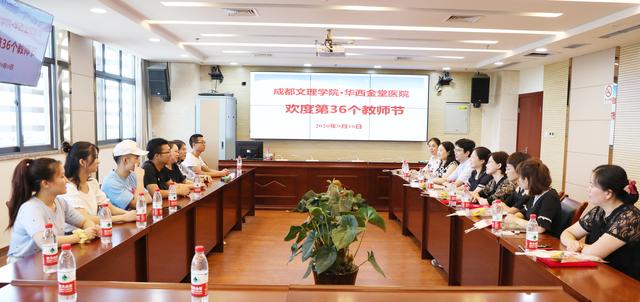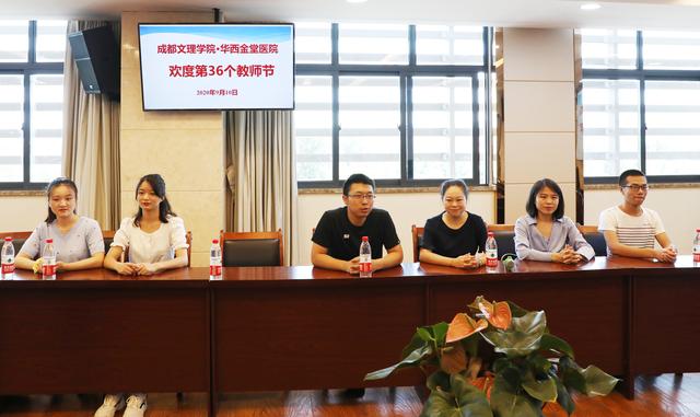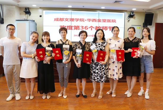9月10日上午,成都文理学院体育与医护学院党总支书记袁久斌一行7人带着鲜花和祝福来到金堂县第一人民医院·四川大学华西医院金堂医院与在该校受聘的护理讲师们共度了第36个教师节。华西金堂医院工会主席鲍晓莺、科教科科长陈卓、护理部主任陈碧蓉及成都文理学院学生代表等参加活动。