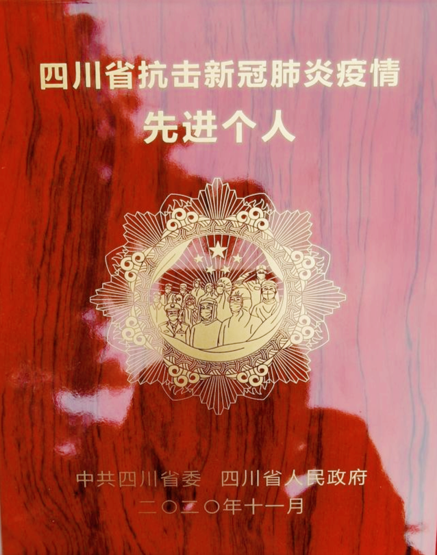 11月17日,四川省抗击新冠肺炎疫情和防汛救灾省级先进个人集体表彰大会上,犍为县人民医院医技党支部书记、检验科主任、主管检验师王洪被表彰为四川省抗击新冠肺炎疫情先进个人。