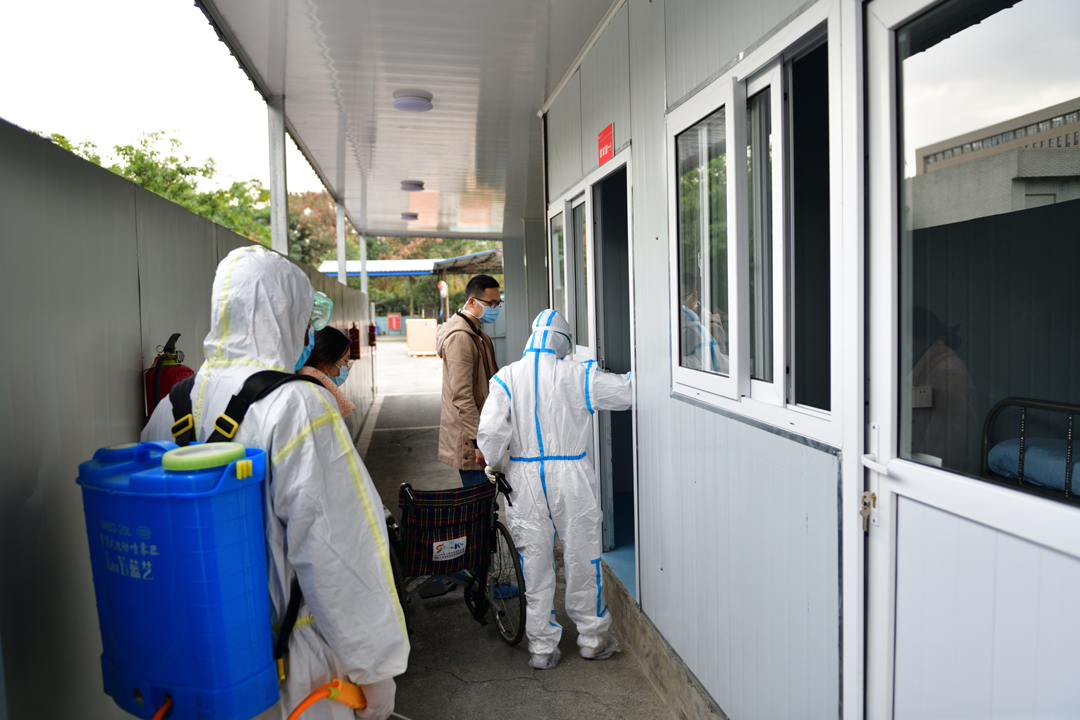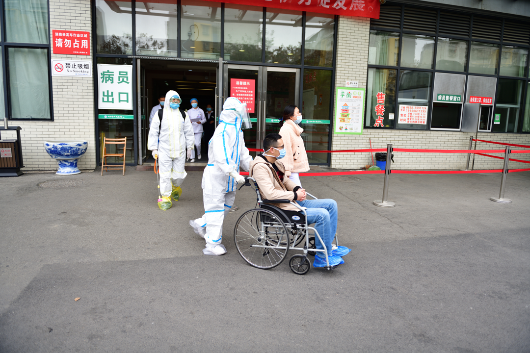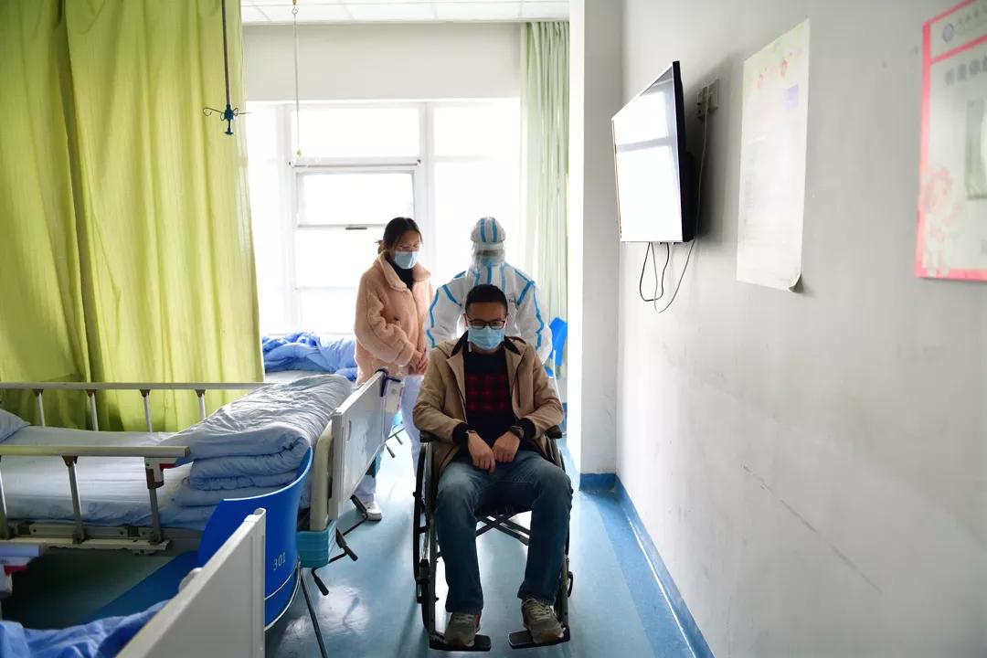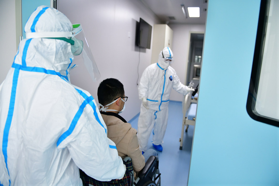 患者核酸检查结果为阳性,实验室血象检查白细胞减低, CT有磨玻璃阴影,结合临床症状和流行病学史,院内专家会诊确诊为新冠患者,评估病人病情可自行活动,感染科专职医护人员在负压病房按照新冠肺炎感染的防控流程和治疗方案对病人进行诊疗和护理,直至病人解除隔离出院。
