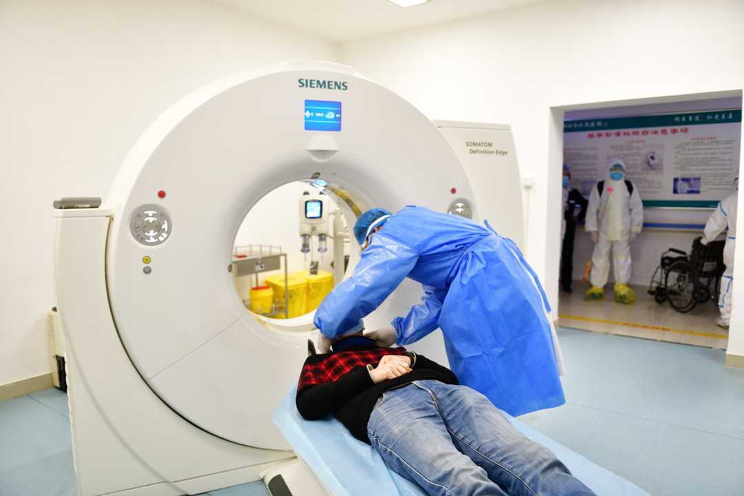 病房通知医学影科(专用CT)、保卫科,后勤管理科,CT室做好登记并通知技师,规范穿戴防护用品。保卫科清空患者转运通道(五号电梯口至新冠专用CT机房),科室人员按照患者转运通道将患者转运至 CT室, 根据《医学影像(CT检查感染防控流程》落实相关工作,图像输至 PACS 网络,将检查结果及早反馈给主管医生和救治专家会诊组。参照《环境、物体表面清洁消毒流程》落实相关消毒工作。检查结束后医学影像科做好室内