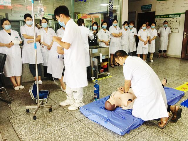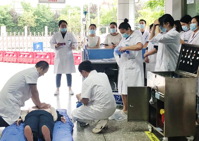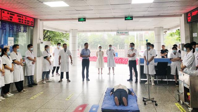 7月31日下午,为保障门诊患者就医安全,增强全院医务人员应急处置能力,金堂县精神病医院医务科联合护理部在门诊大厅开展门诊病人突发猝死应急演练,全院医务人员进行了观摩。