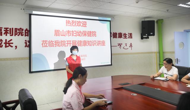 在市儿童福利院,华西二院眉山妇女儿童医院院感科主任徐立群及预防保健科主任祝丽娟为"爱心妈妈"带去健康知识讲座,从新冠病毒的认识、流行特点、疫情防控、工作人员防护、儿童防护等方面展开讲解。爱心妈妈们积极学习,记录重点知识,以便在今后孩子们的照护中学以致用,严格按要求做好疫情防控工作。