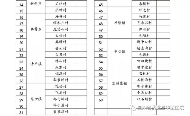 为更好地贯彻落实健康扶贫政策,根据县卫生健康局医疗扶贫相关工作安排,从2016年开始,武胜县中医医院组成多个扶贫义诊工作队,深入医联体成员所在乡镇贫困村相继开展“精准扶贫,健康行动”系列巡回义诊活动。
