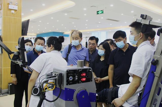 在崇州二医院院长朱志忠及党政领导班子的陪同下,恒康医疗集团副董事长宋丽华、恒康医疗集团副总裁聂晨、瓦房店第三医院院长吴祖耀、辽渔医院院长沈连平、盱眙中医院院长何占德、泗阳县人民医院院长唐小宇、兰考第一医院院长王冰、赣西肿瘤医院院长李水、赣西医院院长尹明、蓬溪恒道中医医院院长严大华、绵阳爱贝儿妇产医院院长孙文清等领导,依次参观了神一科、骨一科、骨二科、普外科、中西医结合科、血透科等科室,并驱车前往二医院下设机构聚源养老中心医院、人工智能康复医院进行调研指导。
