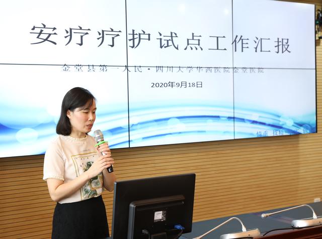 9月18日,成都市临终关怀质量控制中心专家组组长魏大萍带队一行3人到金堂县第一人民医院·四川大学华西医院金堂医院进行了安宁疗护试点科室专科业务指导及检查。县卫健局计生协秘书长、党组成员何桂华,华西金堂医院副院长陈剑陪同。